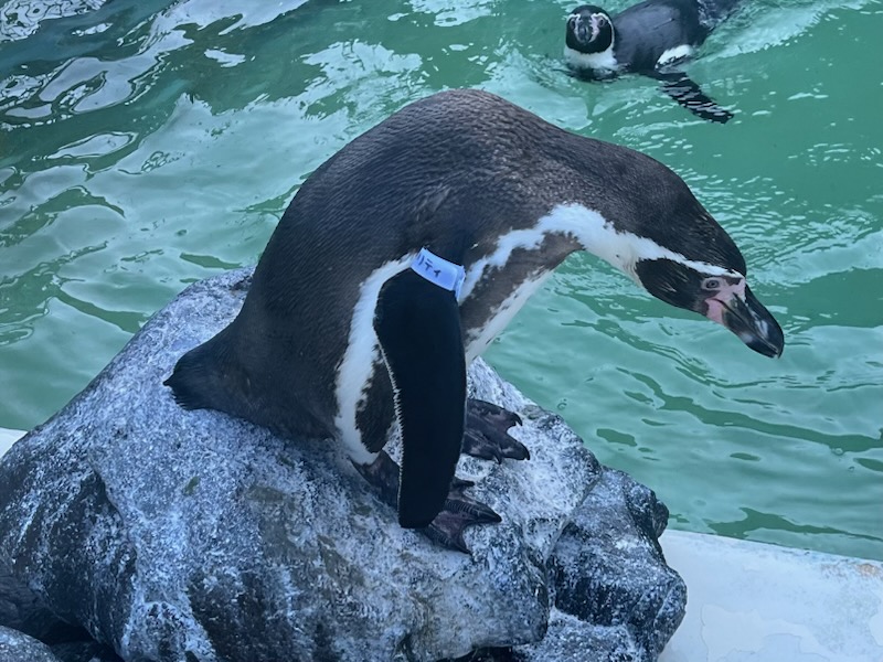 もう他のペンギンたちと混ざっています。