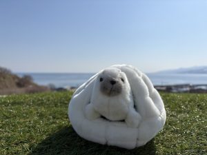 No.10 左:ぬいぐるみマスコットゴマフアザラシ(税込¥990)